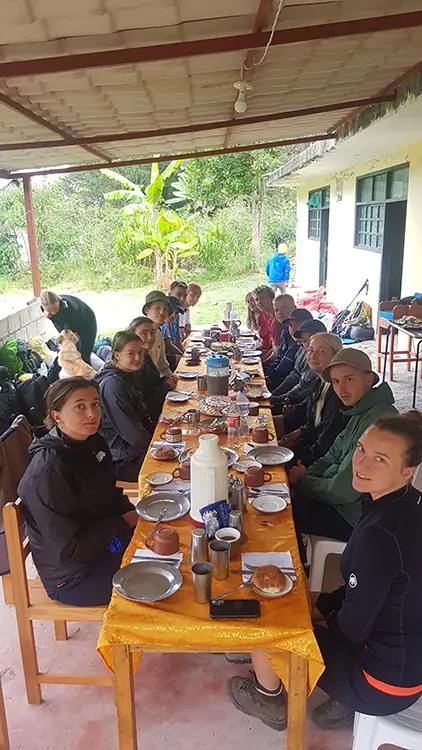 Our second day of hiking begins at 6:30 a.m. with tent service and a hot cup of coca tea — perfect for helping with the altitude. Afterward, you’ll enjoy a nutritious breakfast in our dining tent to prepare for the day ahead.