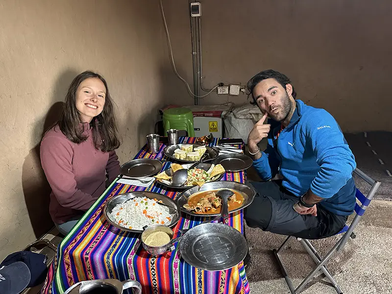 - Ropa de abrigo, chaqueta de plumas (temperatura del segundo campamento alrededor de 3 °C).