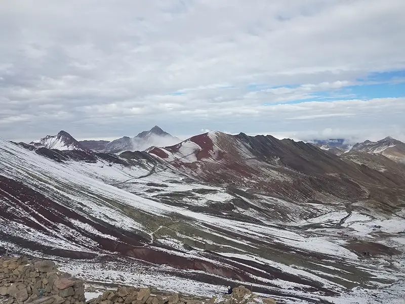 Después del desayuno, iniciaremos nuestra caminata a las 7:00 a. m., ascendiendo de forma constante durante aproximadamente 2 horas hasta llegar al Paso Arapa, a 4800 m (15 748 pies). Desde la cima, disfrutaremos de impresionantes vistas panorámicas del nevado María Huamantilla, con el majestuoso nevado Ausangate elevándose tras él.