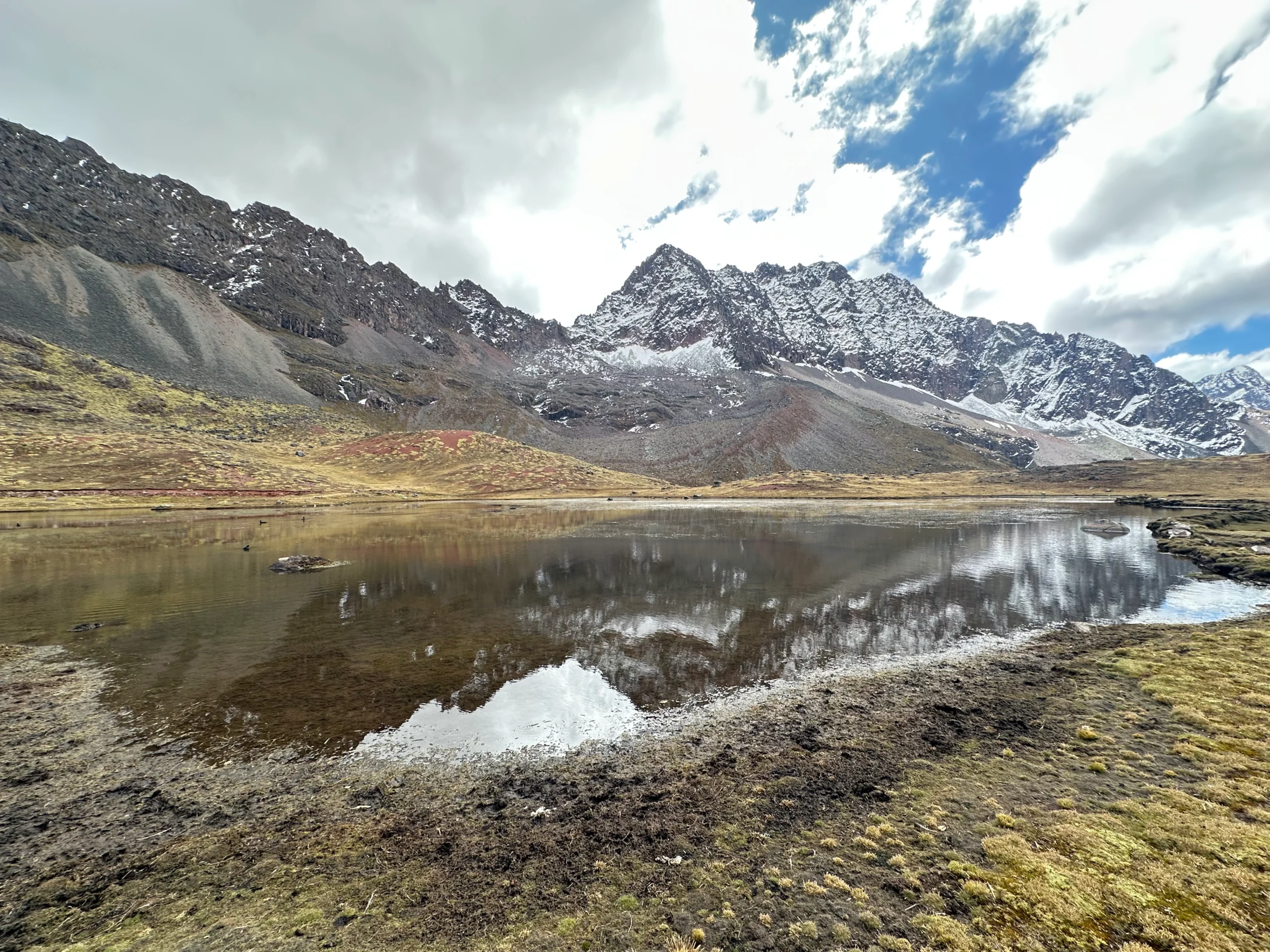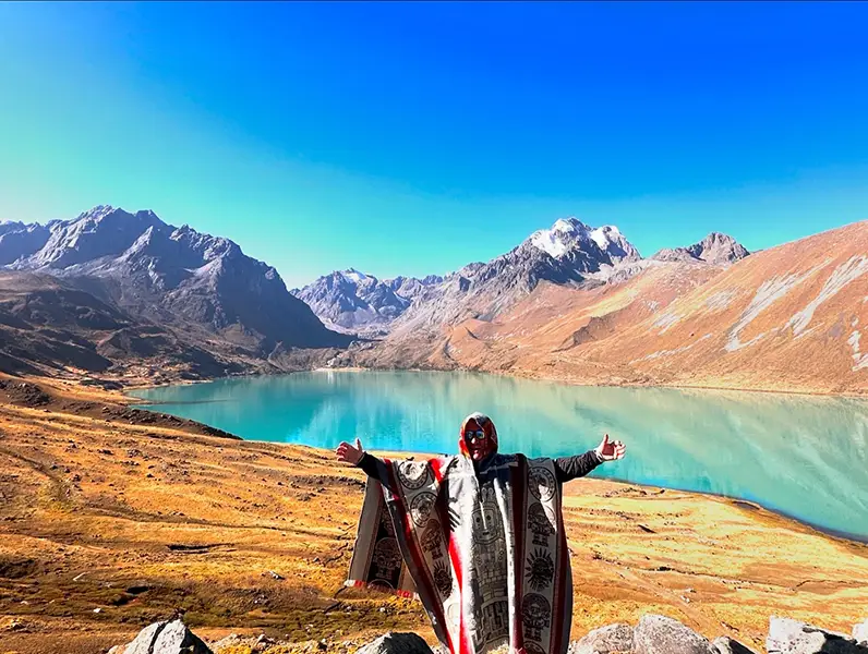 Por la tarde, iniciaremos un suave ascenso de 2.5 horas hacia nuestro segundo paso de montaña del día: el Paso Ausangate (4700 m / 15 419 pies). Desde este punto, disfrutarás de vistas impresionantes del nevado Ausangate y del hermoso lago Ausangatecocha, un brillante cuerpo de agua turquesa formado por el deshielo glacial.