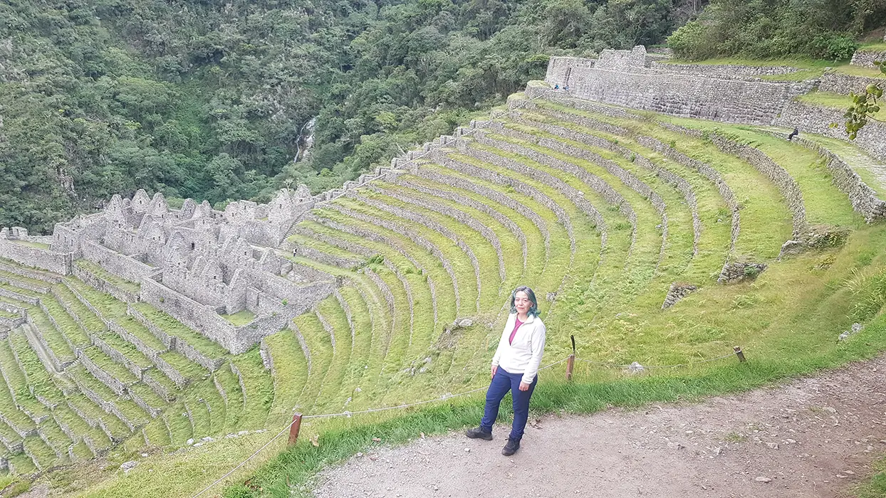 Tras disfrutar de las vistas, el sendero continúa con un descenso de tres horas hacia tu campamento final en Wiñay Wayna (2700 m / 8858 pies). A medida que desciendes, notarás que la temperatura sube, señal de que te acercas no solo a Machu Picchu, sino también al límite de la selva amazónica.