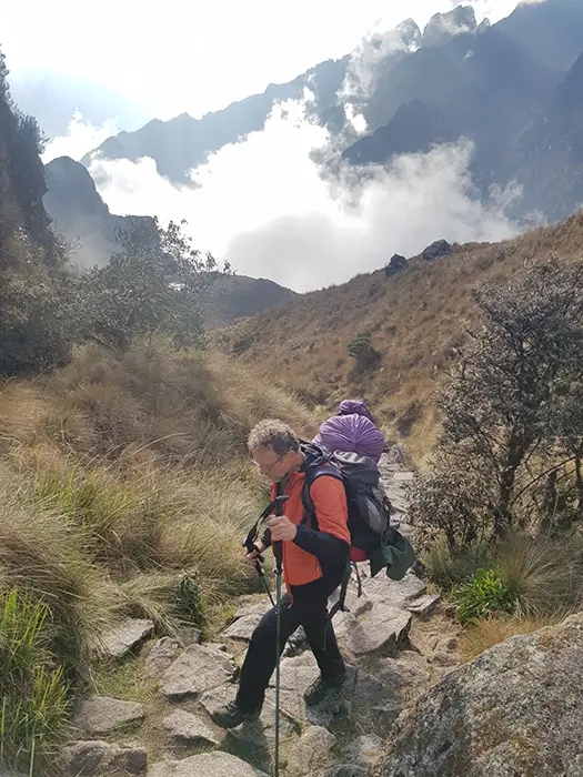 El Camino Inca Clásico es una exigente caminata de 43 km a través de los Andes, alcanzando los 4217 m de altitud. Incluye ascensos empinados, especialmente el segundo día, con dos pasos de montaña. Se requiere buena condición física y entrenamiento previo. Para prevenir el mal de altura, se recomienda pasar de 2 a 3 días en Cusco (3350 m) antes de comenzar la caminata para una correcta aclimatación.
